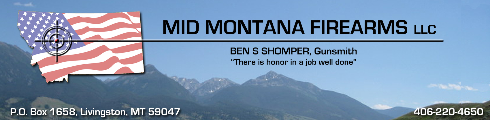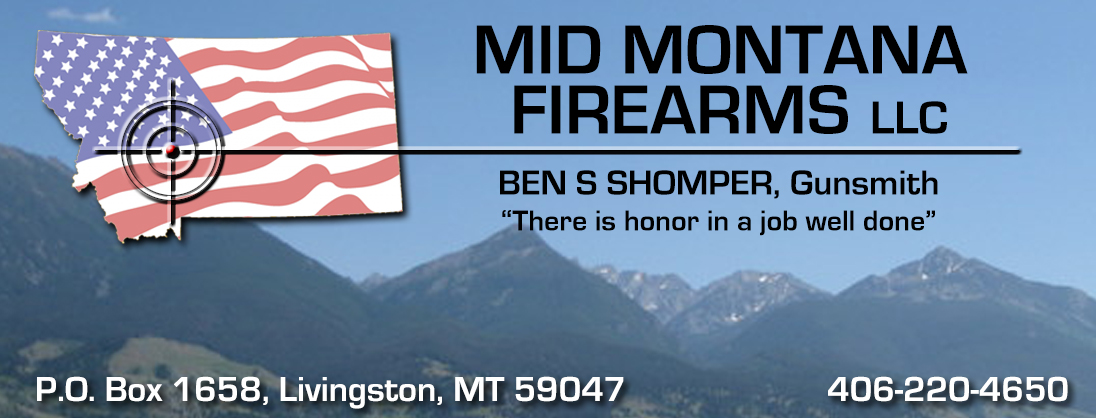 We are an 07 FFL and NFA Firearms dealer located in the Paradise Valley area south of Livingston, Montana. The ultimate goal of any dedicated craftsman is to seek perfection in his work, and the ultimate goal of any business is to seek customer satisfaction. We attempt to subscribe to those goals through the services we provide. We are constantly looking for ways to improve and expand our current services in order to provide a better final product for our customers. We offer a free, lifetime replacement warranty on any parts we install, as well as free lifetime cleaning and maintenance on any firearm we rebarrel or build.