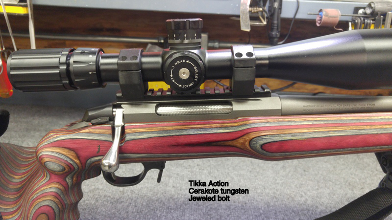 Finishing techniques such as Cerakote and bolt jeweling shown on this Tikka are two of many special treatments we offer.